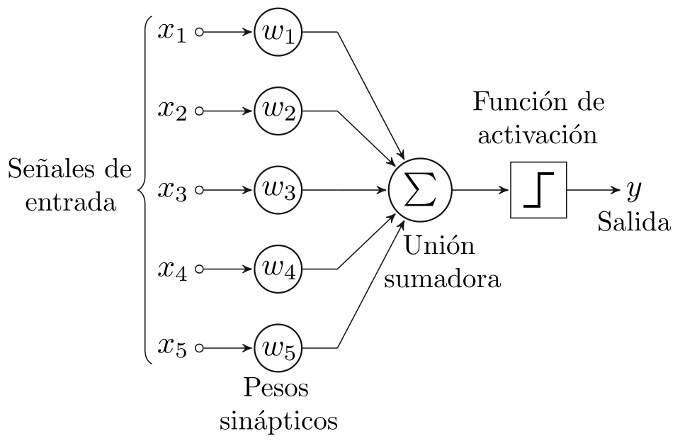 Esquema de funcionamientro del perceptrón según Wikipedia