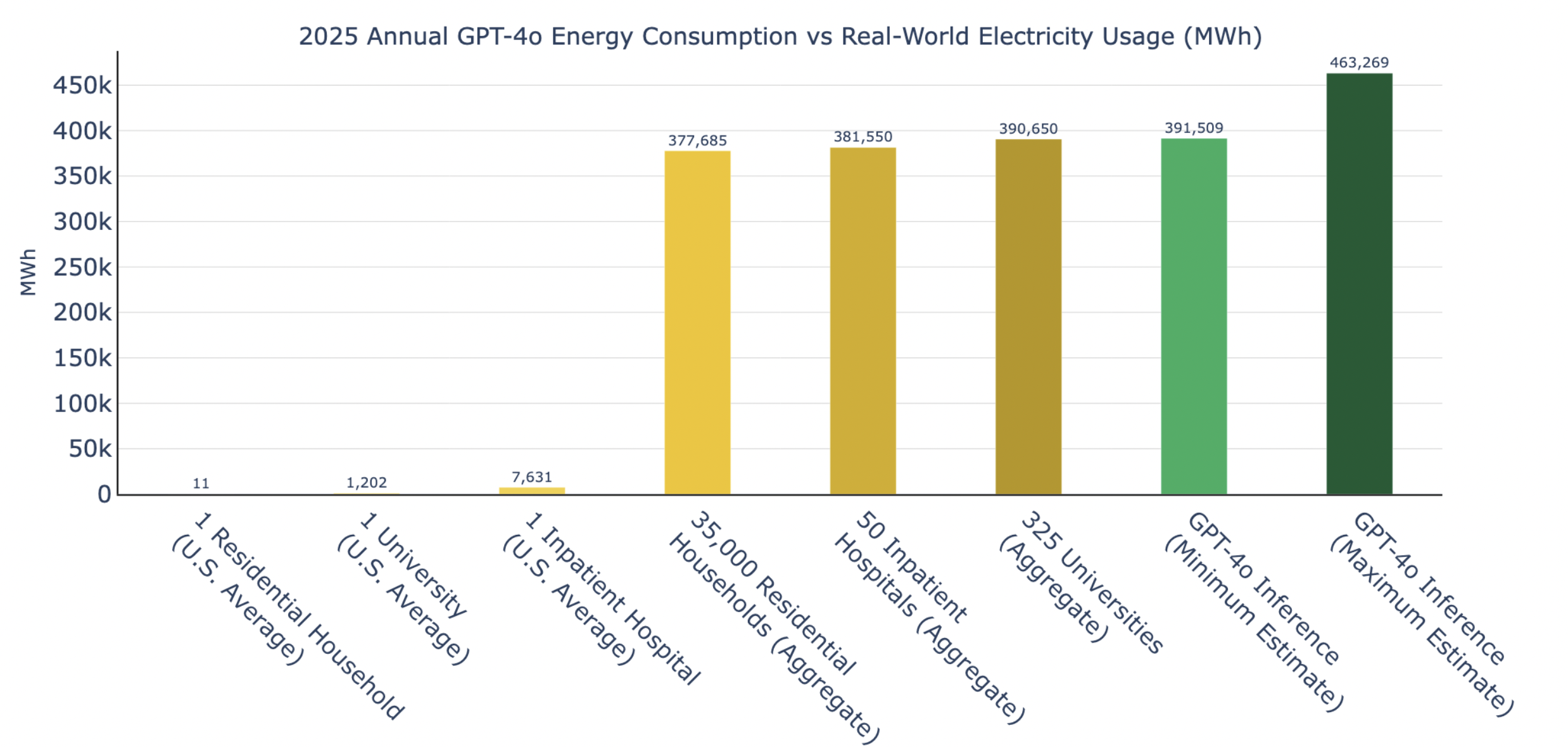 Entrenar un gran modelo de lenguaje (LLM) requiere una cantidad grande de energía, sin embargo, es un consumo que se hace una sola vez. Por ejemplo, el entrenamiento de GPT-4 requirió aproximadamente 50 Gigavatios-hora (MWh). España consume anualmente en torno a 250 000 GWh, 5000 veces más, por lo que este entrenamiento, que recordemos que sólo se produce una vez para cada modelo, no parece un coste muy grande en comparación con nuestra capacidad de generación.