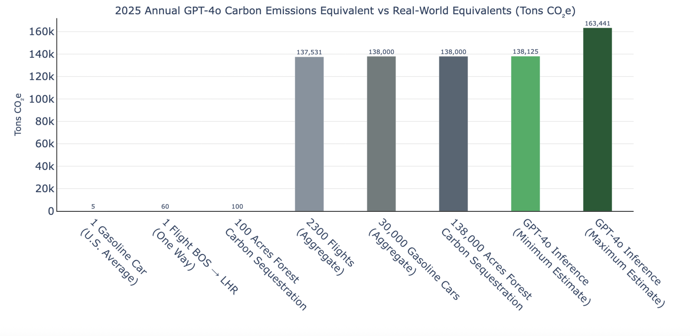 Como vemos, el consumo global anual de todo GPT4 equivale a 35 000 viviendas en USA y su huella de carbono es la de 30 000 coches de gasolina.