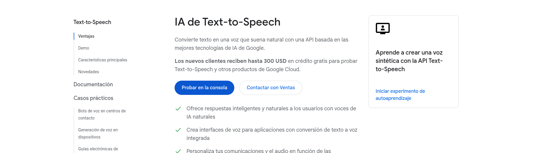 Permite convertir texto en audio utilizando voces sintéticas que pueden integrarse en aplicaciones o dispositivos.