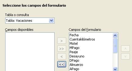 Pulse la doble flecha de la derecha para mover todos los campos hacia la lista Campos del formulario. Haga clic en Siguiente.