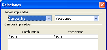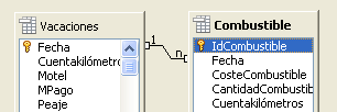 Puede definir la relación entre las tablas Vacaciones y Combustible de dos modos: