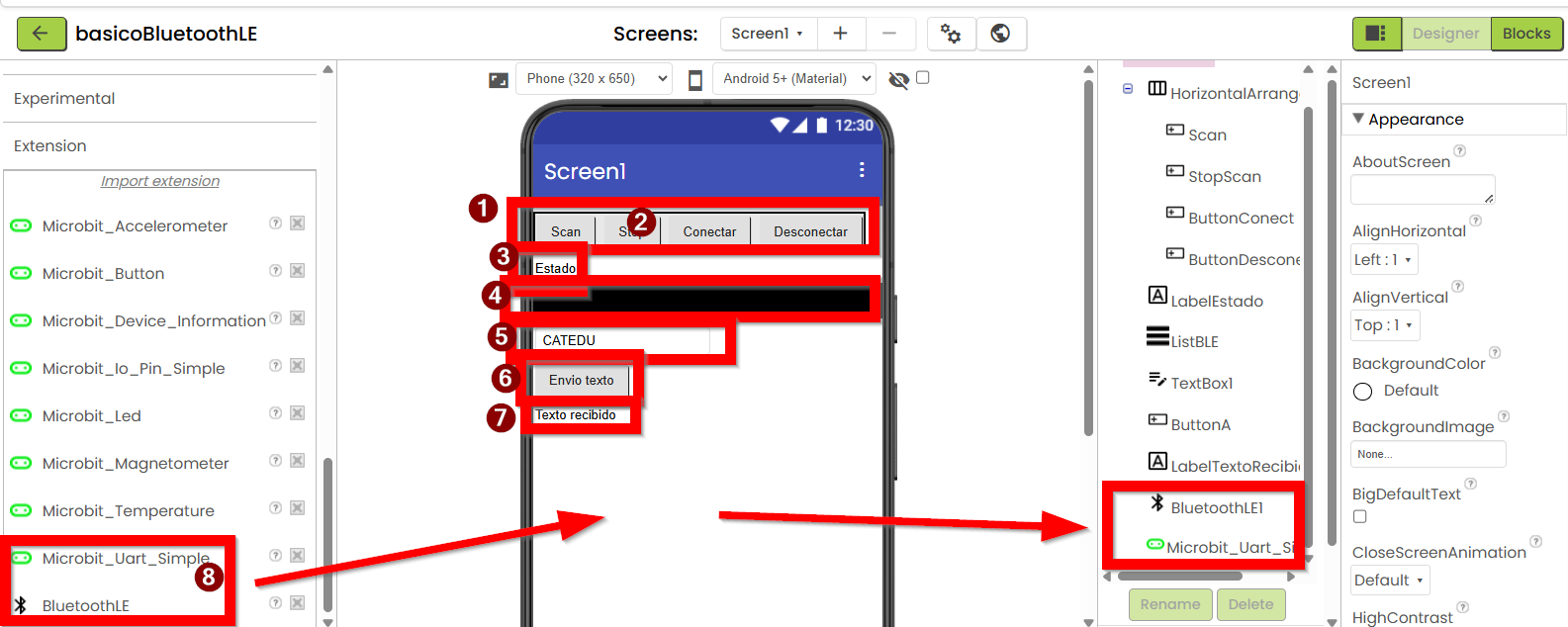 - Un Label que lo llamaremos LabelTextoRecibido que mostrará el mensaje desde micro:bit