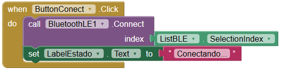 Cuando le demos a conectar, pues conecta con el seleccionado en ListBLE y LabelEstado informa