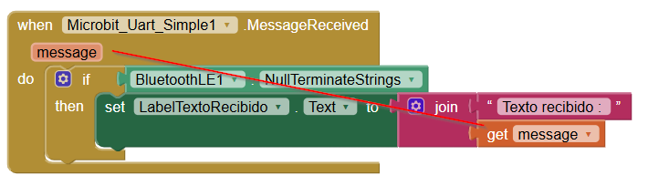 NOTA el mensaje "message" lo arrastras desde la instrucción "when.." tal y como señala la línea roja