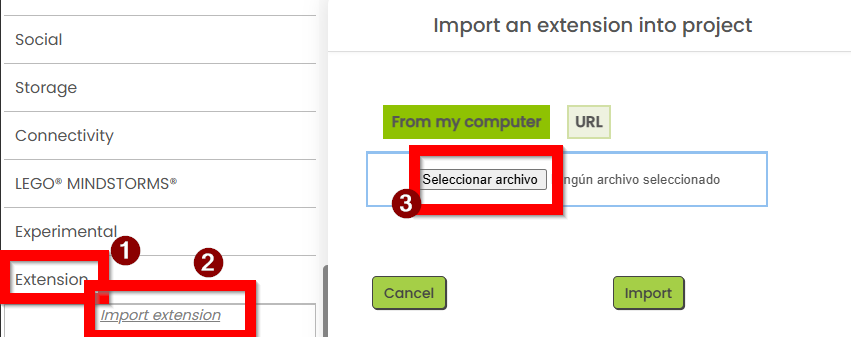 Una vez descargadas, vamos al APP INVENTOR https://ai2.appinventor.mit.edu y las instalamos en extensiones :