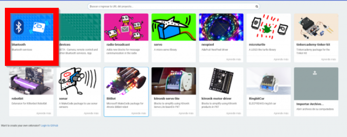 En Makecode instalaremos la siguiente extensión