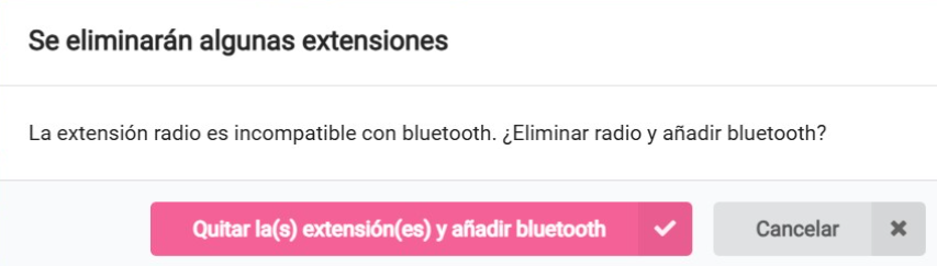 Nos dirá que es incompatible con la radio, y hay que eliminar la radio y poner Bluetotth, aceptamos :