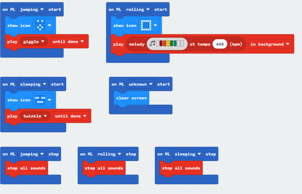 Vamos a a reconocer diferentes gestos de un muñeco peluche. Extraído de https://microbit.org/projects/make-it-code-it/ai-storytelling-friend/