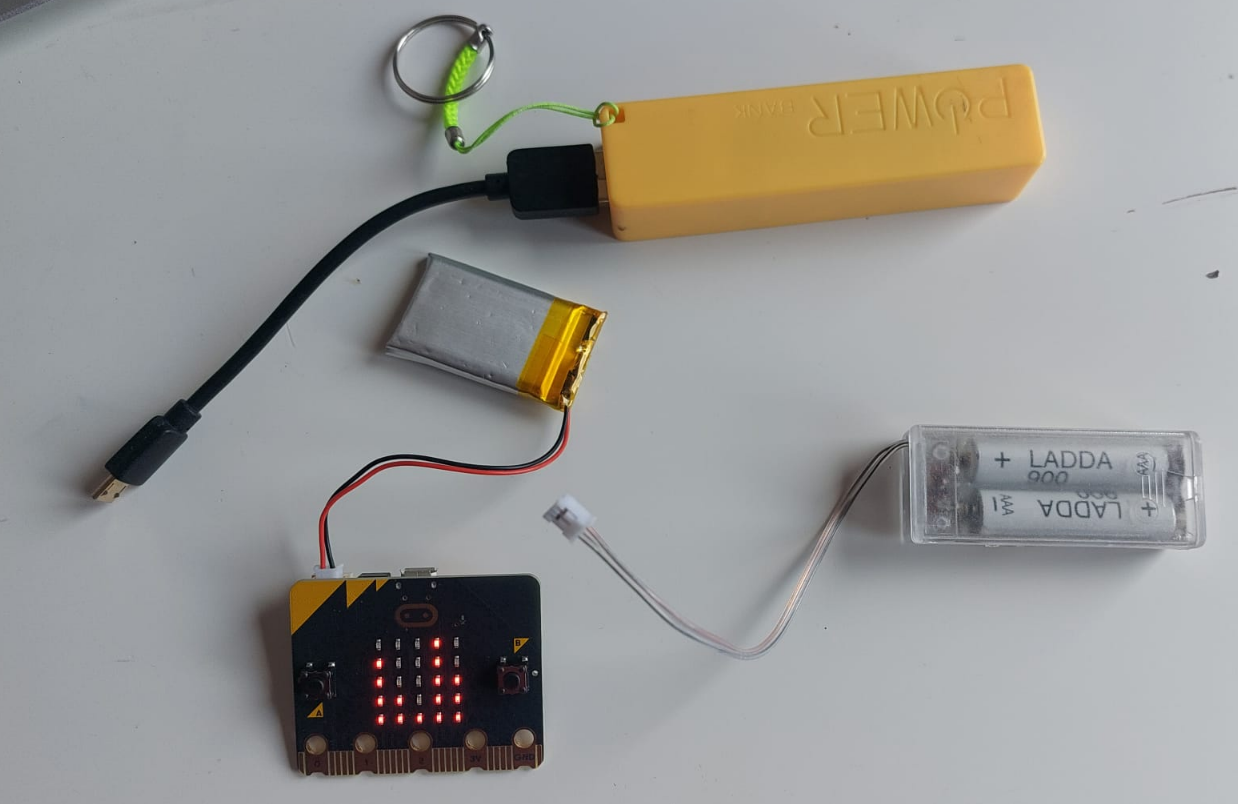Le ponemos una alimentación externa. Podemos usar pilas, batería de dron o powerbank :