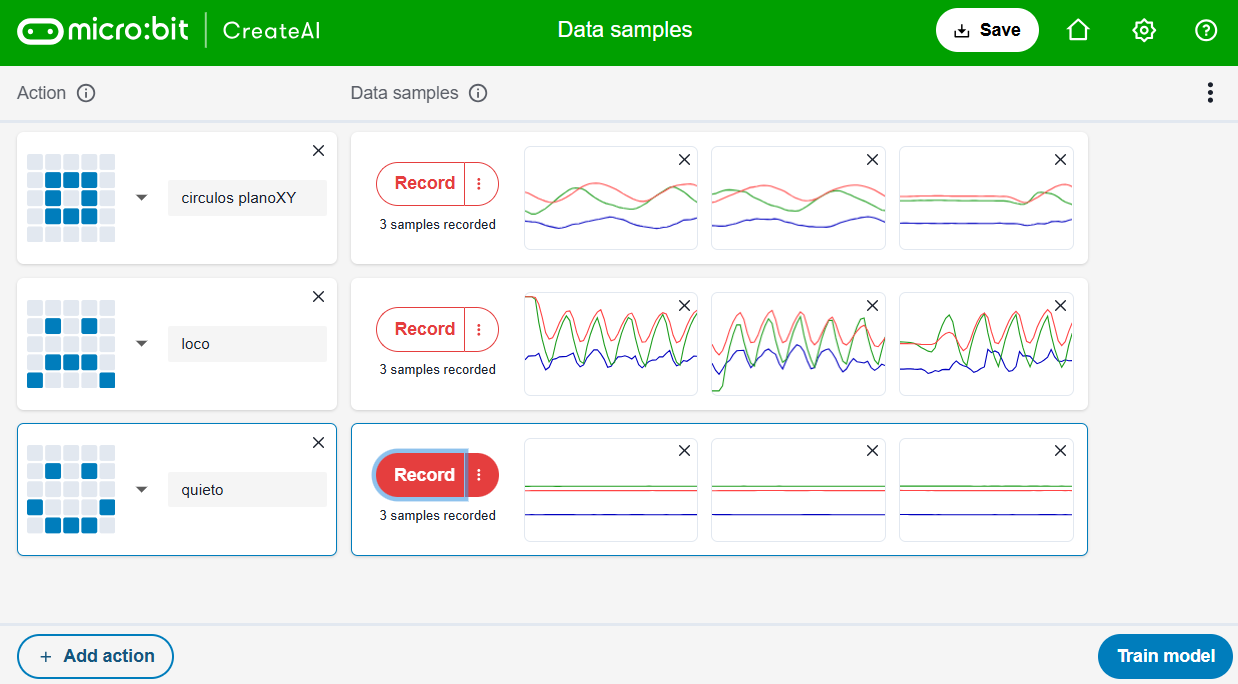 Cuanto más grabaciones hagas, la máquina ML detectará mejor tus acciones. Mínimo son 3.