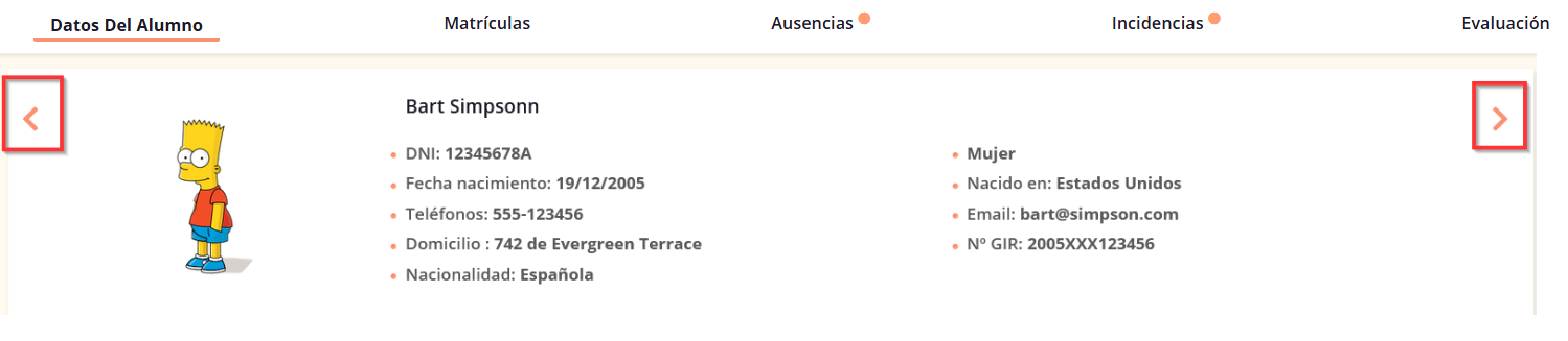 - Datos del alumno: datos básicos del alumnado así como datos de contacto.