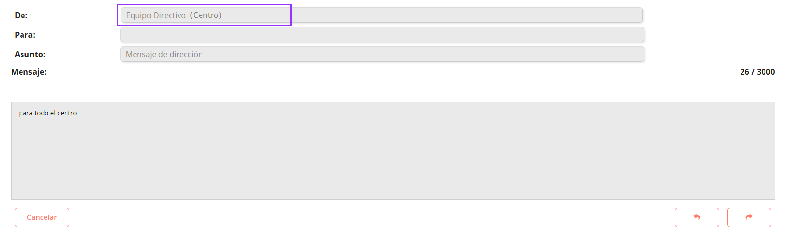 Mensaje enviado por un miembro del Equipo Directivo