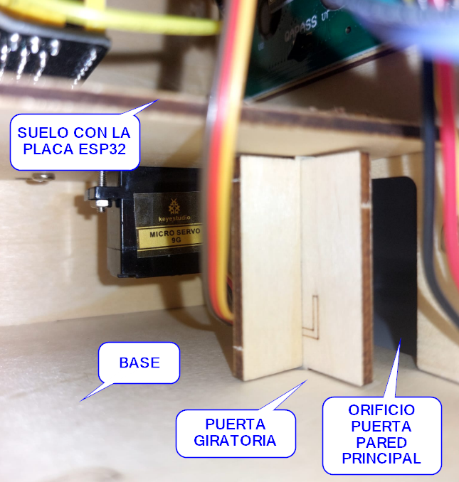 El siguiente elemento es difícil de visualizar, es unir la base con una puerta giratoria con el suelo que tiene la placa