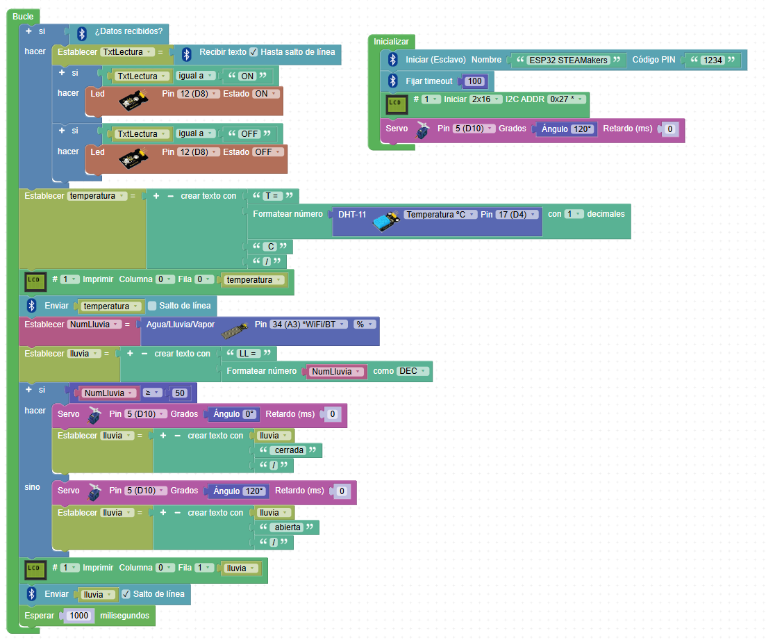 Ahora vamos a realizar la comunicación bidireccional. El propósito es que si recibe un código, que encienda y apague los leds, pero además vamos añadir comunicación hacia la APP del móvil, que nos envíe información de los sensores. Un ejemplo de enunciado sería: