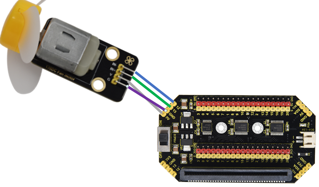 El IN va al 12 y en OUT va al 13 (realmente da igual, si se conecta al revés el motor gira hacia el otro lado) PERO